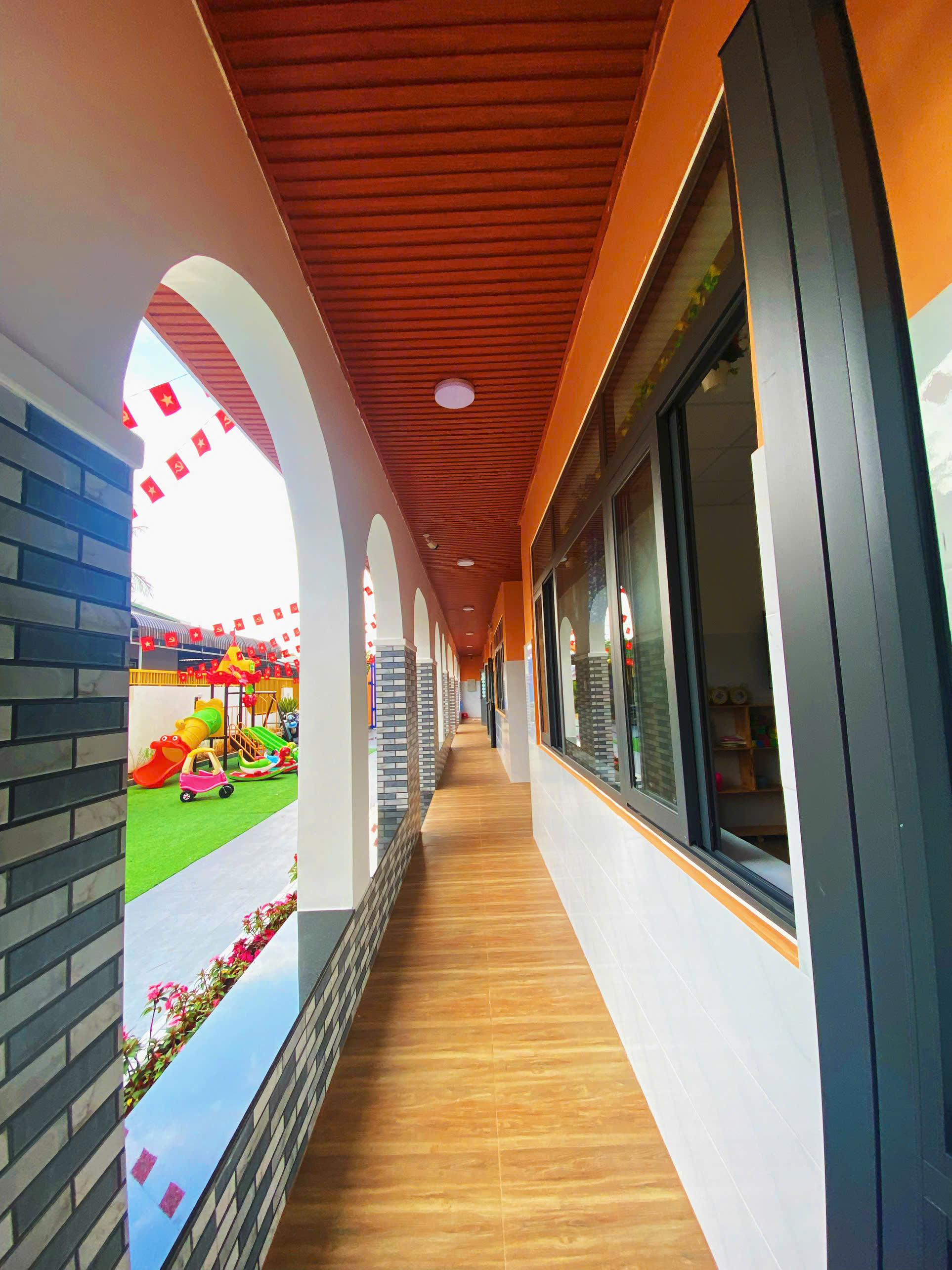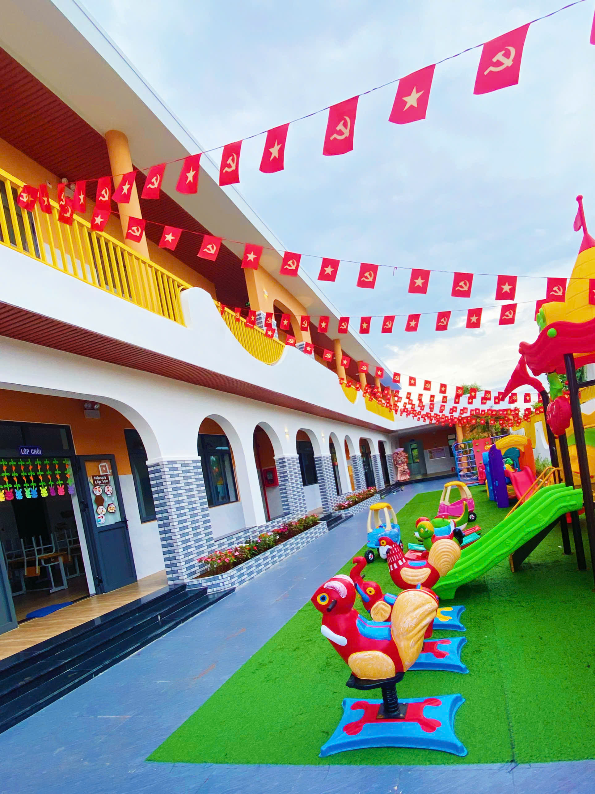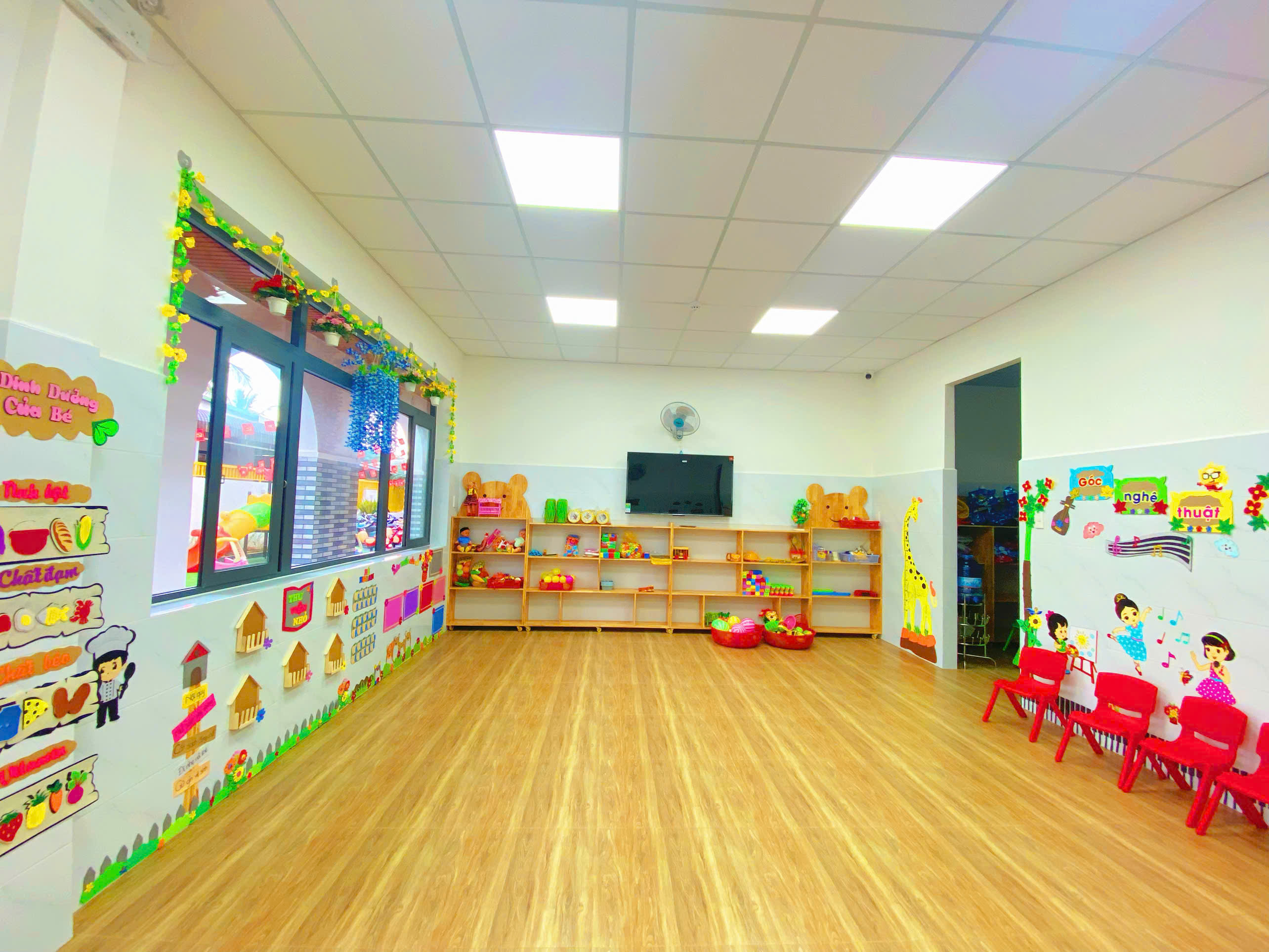 Trường được thiết kế khang trang, thoáng mát, có khu vui chơi ngoài trời và lớp học đầy đủ trang thiết bị, đảm bảo an toàn tuyệt đối cho trẻ. Mỗi không gian đều được chăm chút nhằm mang lại sự thoải mái và kích thích sáng tạo cho bé.